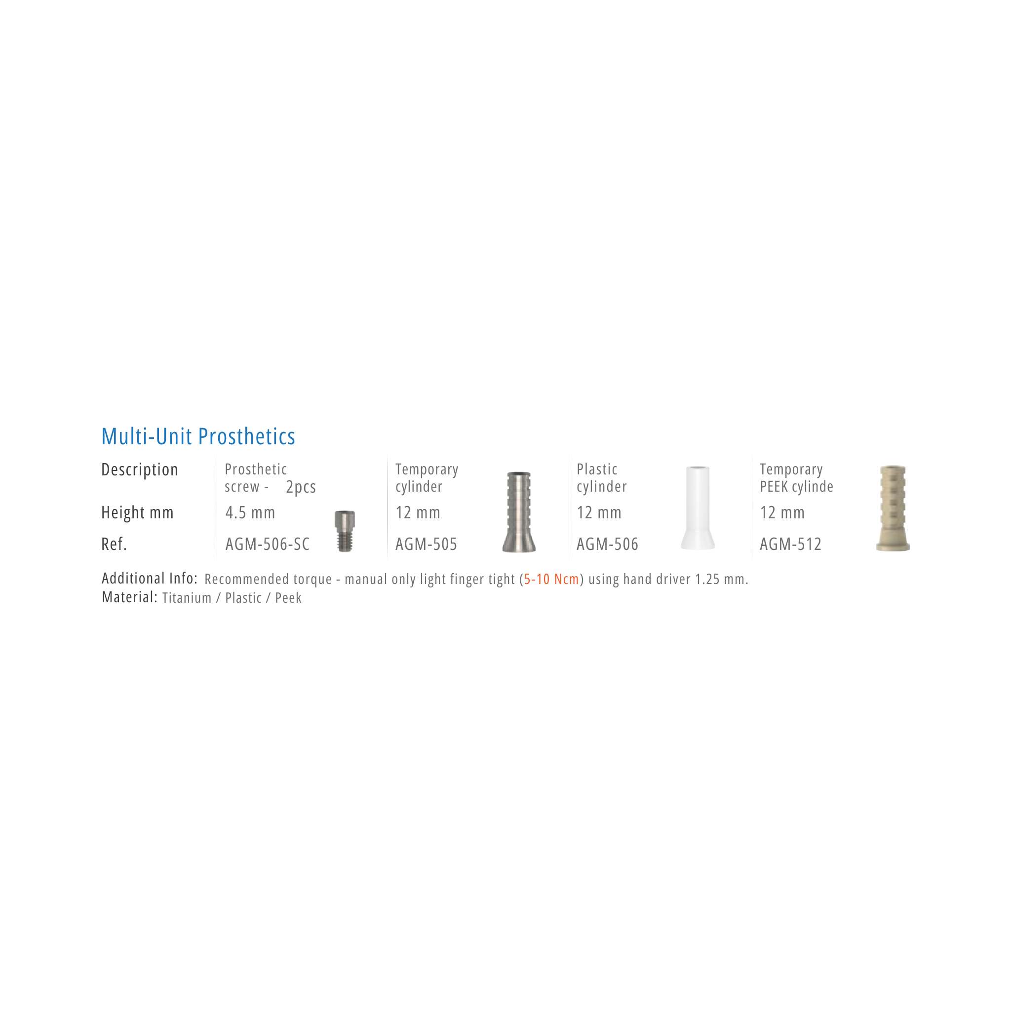 Thông Số Kỹ Thuật của MULTI UNIT PROSTHETIC